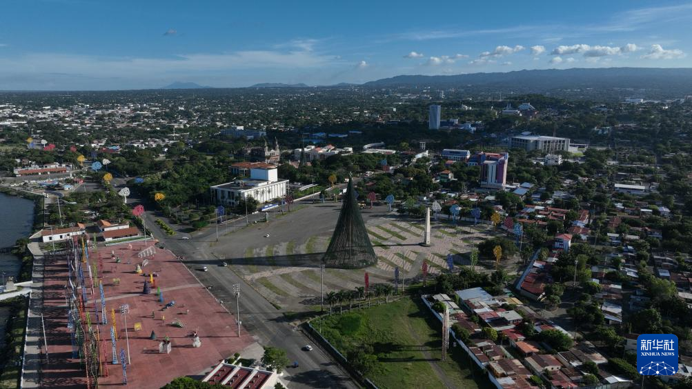 11月17日在尼加拉瓜首都馬那瓜拍攝的尼加拉瓜廣場(chǎng)(無人機(jī)照片)。