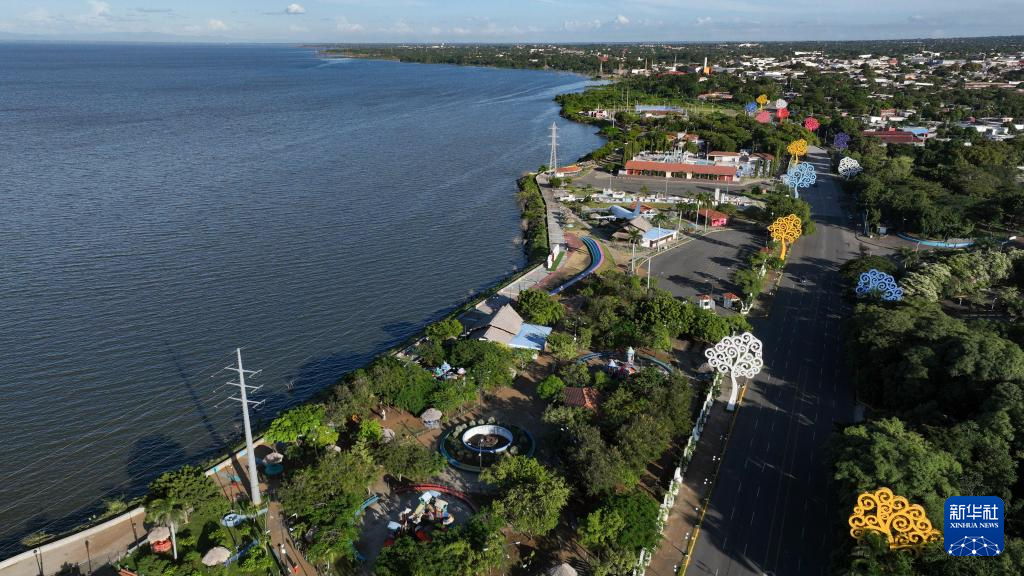 11月17日在尼加拉瓜首都馬那瓜拍攝的馬那瓜湖(無人機(jī)照片)。