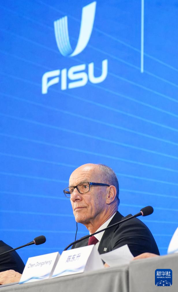 11月26日,國際大學生體育聯(lián)合會主席雷諾·艾德在新聞發(fā)布會上。新華社記者 許暢 攝