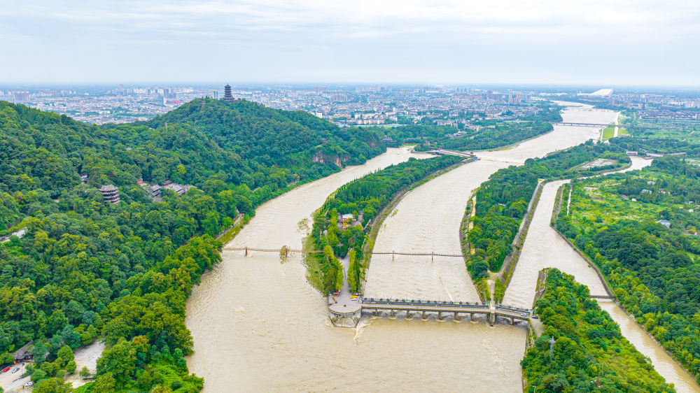 2025年7月拍攝的都江堰水利工程(無人機照片)。新華社發(何勃 攝)